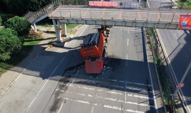 Edinilen bilgilere göre olay Tahtakale Mahallesi Vali Recep Yazıcıoğlu Caddesinde yaşandı. İş makinesi taşıyan 34 FD 3363 plakalı tır, cadde üzerindeki üstgeçide çarptı. Kazada tır şoförü ve yanındaki yolcu yaralandı. Üst geçitte ise büyük çapta maddi hasar meydana geldi.