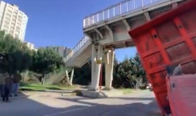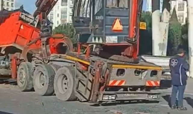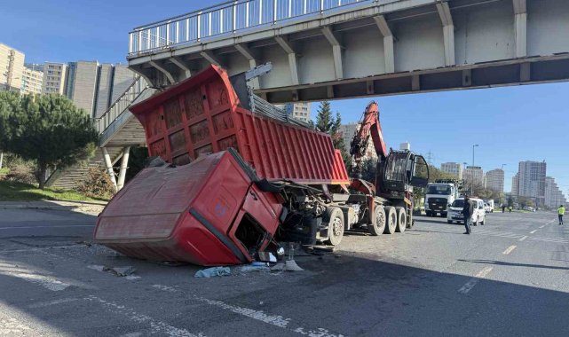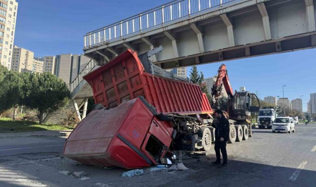 Avcılar'da iş makinesi taşıyan tır, üstgeçide çarptı. Kazada tır sürücüsü ve yanındaki yolcu yaralanırken, üstgeçitte büyük çapta hasar oluştu.