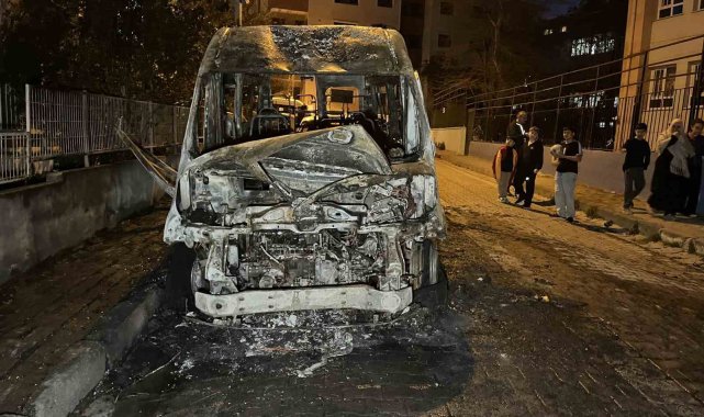 Avcılar'da park halindeki servis aracı alev alev yandı