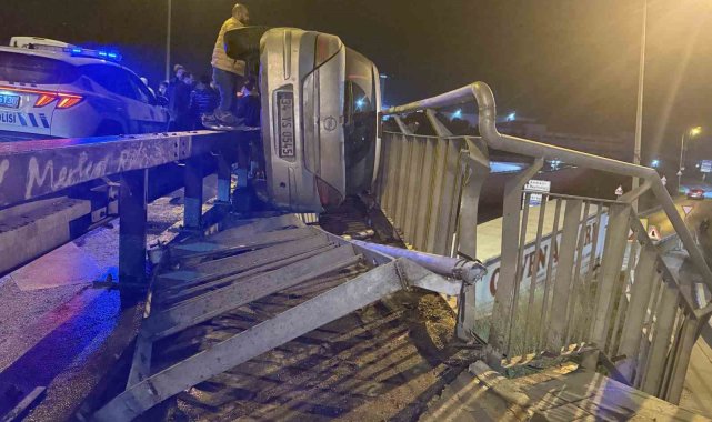 Avcılar, E-5 yan yol seyir halinde bulunan otomobil, başka bir araca çarparak bariyerle köprü korkulukları arasına düştü. Kazada 2 kişi yaralandı.