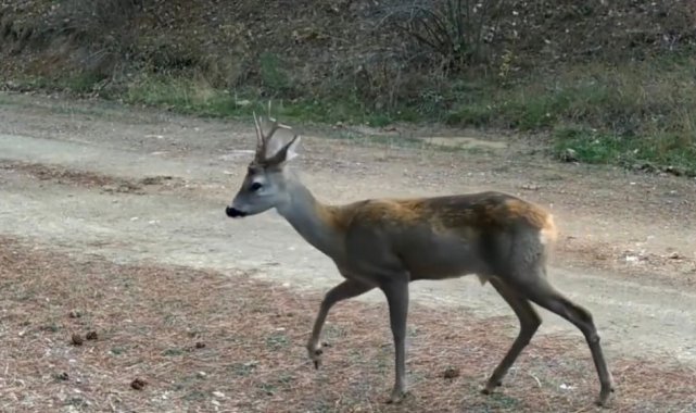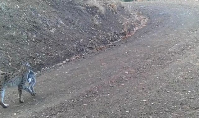 Çankırı'da doğaya yerleştirilen fotokapanlar, bölgedeki yaban hayatını gözler önüne serdi. Nesli tehlike altında bulunan bir vaşağın ağzında avladığı hayvanı taşıdığı anlar da fotokapan kamerasına yansıdı. Görüntülerde vaşağın avladığı hayvanla ormanda yürüdüğü ve karacalar ve kurt sürüsünün yiyecek aradığı görülüyor.