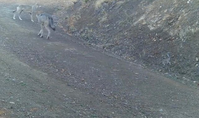 Çankırı'da avladığı hayvanı ağzında taşıyan vaşak ile karacalar ve kurt sürüsü fotokapan kameralarına yansıdı.