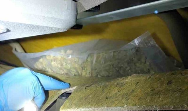 Yapılan incelemede, kabin içerisindeki doğal boşluklara gizlenmiş halde 11 paket halinde toplam 5 kilo 763 gram esrar ile 1 kilo 74 gram kokain ele geçirildi.