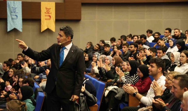 "Türkiye Yüzyılı'nda Ulaştırma Vizyonu" başlıklı konuşmasını yapmak üzere kürsüye davet edilen Bakan Yardımcısı Osman Boyraz, en güzel zaman diliminin gençlerle geçirilen zamanlar olduğunu belirterek öğrencilerle bir arada olmaktan duyduğu memnuniyeti dile getirdi. Ülkemizin; 4 saatlik uçuşla, 67 ülkeye ve 1.5 milyara insana ulaşabilen ender bir coğrafyaya sahip olduğunu belirten Osman Boyraz, Avrasya lojistiğinin merkezinin Türkiye olduğunu ifade etti. Son 20 yılda ülkemizdeki 6 bin 101 km uzunluğundaki bölünmüş yol ağını, 29 bin 742 km'ye çıkardıklarına dikkat çeken Boyraz; Osmangazi Köprüsü, Yavuz Sultan Selim Köprüsü, Çanakkale Köprüsü, Avrasya Tüneli ve Kuzey Marmara Otoyolu gibi ülkemize vizyon kazandıran büyük projeler hakkında önemli bilgiler paylaştı.