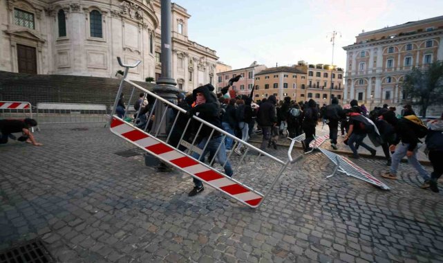 Günün erken saatlerinde barışçıl olarak başlayan protestolar ilerleyen saatlerde şiddet olaylarına dönüştü. Polis, yürüyüş sırasında Santa Maria Maggiora Bazilikası yakınlarında yaklaşık 200 kişinin gruptan ayrılarak çevik kuvvet ekipleriyle çatışmaya girdiğini açıkladı. Güvenlik güçleri kalabalığa tazyikli su ve göz yaşartıcı gaz ile müdahale etti. Yetkililer daha sonra yaşanan şiddet olaylarında ise bazı protestocuların arabaları ile çöp kutularını ateşe verdiğini ve polis memurlarına torpil ve havai fişek attığını belirtti. Polis, müdahaleler kapsamında 12 kişi gözaltına alındığını, 262 kişinin ise kimlik bilgilerinin alındığı açıkladı.
