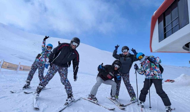 Erasmus projesi çerçevesinde Kayseri'ye gelen 11 farklı ülkeden 28 yabancı gönüllü, Erciyes Kayak Merkezi'nde ilk kez kayak yapmanın keyfini yaşadı.