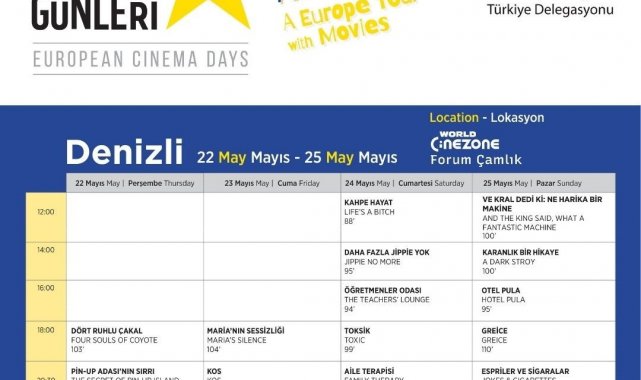 Avrupa Birliği (AB) Türkiye Delegasyonu, AB Üye Devletlerinin Büyükelçilikleri, AB Kültür Enstitüleri ve çeşitli AB Bilgi Merkezlerinin iş birliğiyle düzenlenen 'Avrupa Film Günleri' Denizli'de başlıyor. Denizli Sanayi Odası (DSO) bünyesinde faaliyetlerine devam eden Denizli AB Bilgi Merkezi koordinasyonu ve AB Türkiye Delegasyonu iş birliğinde yapılan etkinlik, bu yıl 22-25 Mayıs tarihlerinde gerçekleştirilecek. 4 gün boyunca ücretsiz film gösterimlerinin yapılacağı bu etkinlikte, Avrupa'nın seçkin filmleri sinemaseverler ile buluşacak. Bu etkinlikte sinemaseverler, Avrupa'nın kültürel zenginliğini yansıtan, çarpıcı ve ilham verici filmleri, beyazperdede izleme imkânı bulacak.
