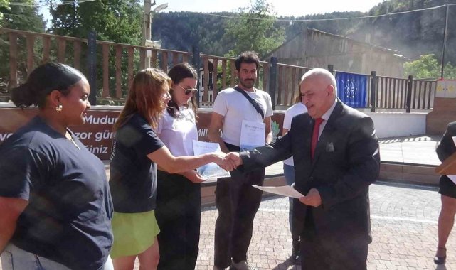 Bolu'nun Mudurnu ilçesinde Avrupa Miras Gönüllüleri'nin Türkiye'deki ilk projesi başarıyla tamamlandı. 12 gün süren çalışmanın ardından gönüllülere Mudurnu'da düzenlenen törende plaket ve belgeleri verildi.