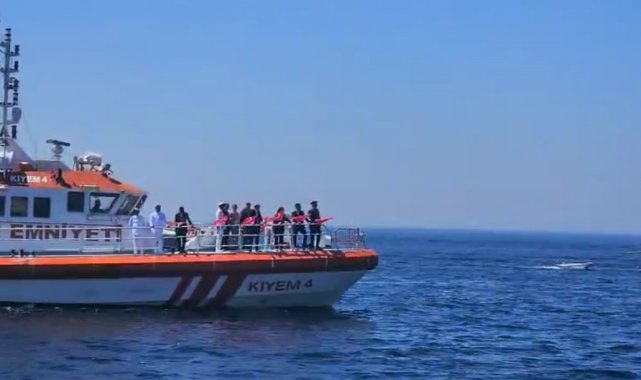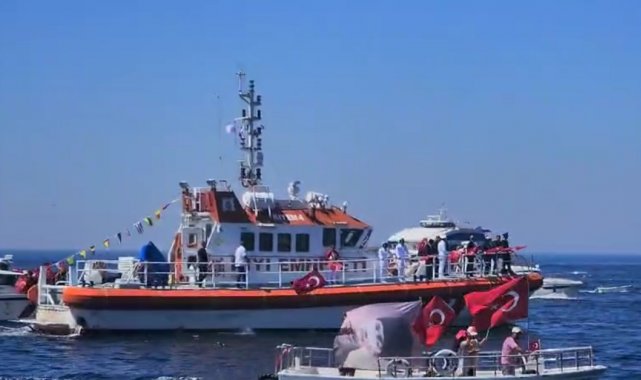 Kıyı Emniyeti, Sahil Güvenlik ve İlçe Jandarma Komutanlığı'na bağlı botlar ile çok sayıda tekne, Türk bayraklarıyla donatılarak ada kıyılarında görkemli bir geçiş töreni gerçekleştirdi.