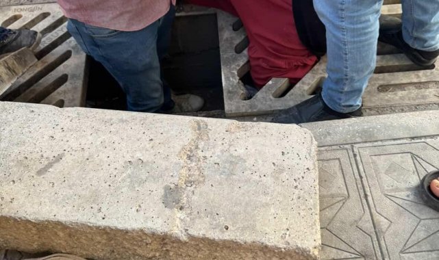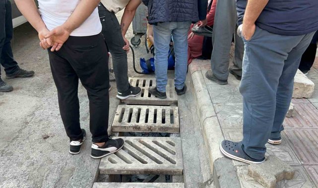 Ayağı mazgala sıkışan kadın zor anlar yaşadı