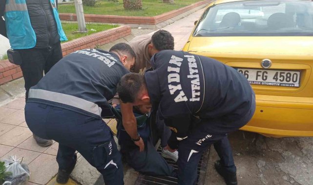 Aydın'ın Efeler ilçesinde ayağı mazgala sıkışan şahsı Aydın Büyükşehir Belediyesi İtfaiye Daire Başkanlığı ekipleri kurtardı.