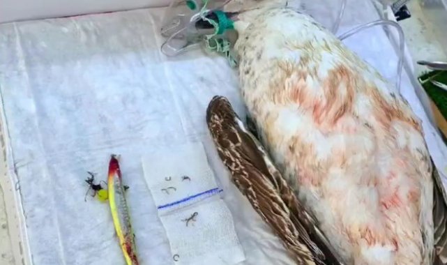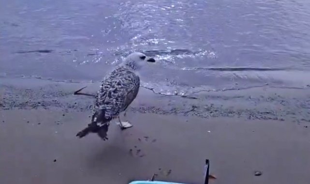 Ayağına dolanan sahte oltayla yaralanan martı tedavisinin ardından doğal ortamında