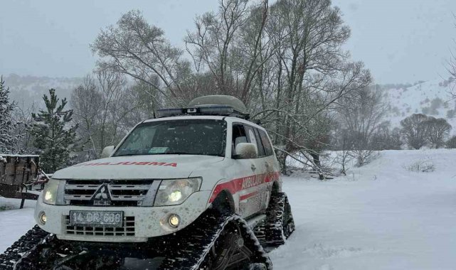 Bolu'nun Gerede ilçesinde, kar kalınlığının 30 santimetreyi aştığı köy yolunda sağlık ekipleri, düşerek ayağını zedeleyen 58 yaşındaki kadının yardımına paletli ambulans ile yetişti.