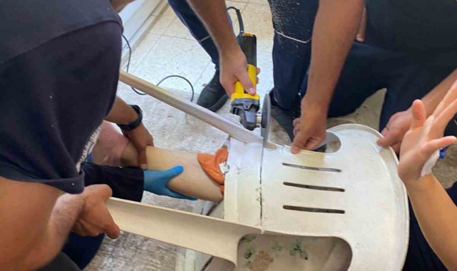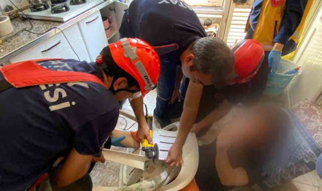 Hatay'da ayağını plastik sandalyeye sıkıştıran vatandaşın imdadına itfaiye yetişti.