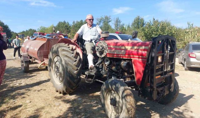 Sakarya'nın Akyazı ilçesinde ormanlık alanda çıkan, havadan ve karadan müdahaleyle kontrol altına alınarak söndürülen yangında bir vatandaş, ayağının kırık olmasına aldırmadan traktörüyle yangına müdahale etmeye çalıştı.