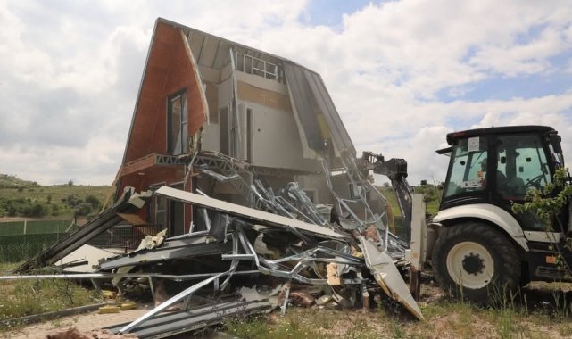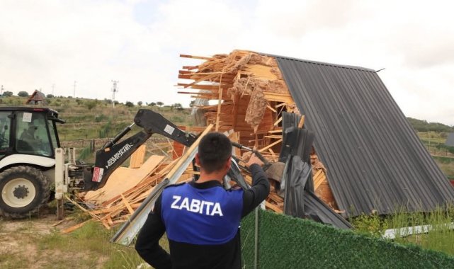 Ankara'nın Ayaş ilçesinde tarım arazilerinin korunması ve imar kanununa aykırı yapılaşmanın önlenmesi amacıyla hobi bahçeleri yıkılıyor.