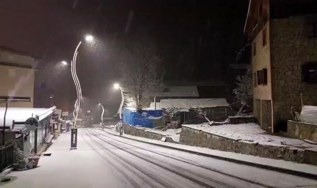 Dünyaca ünlü turizm merkezi Ayder Yaylası, Nisan ayında yağan karla beyaza büründü.
