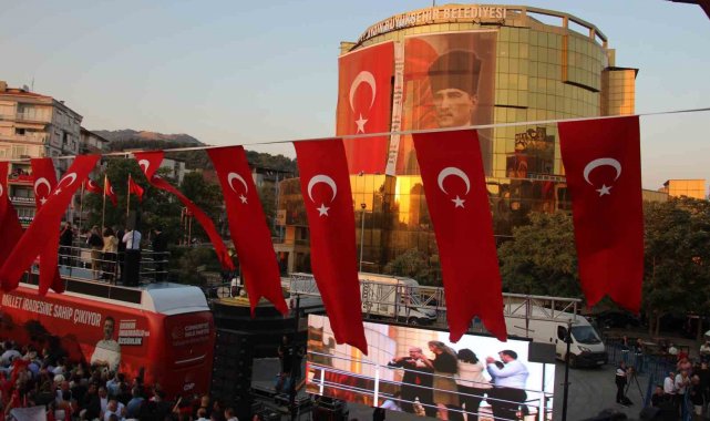 Aydın Büyükşehir Belediye Başkanı Özlem Çerçioğlu'nun 4 gün önce CHP'den AK Parti'ye geçmesinin ardından CHP Aydın İl Başkanlığı tarafından bugün CHP Genel Başkanı Özgür Özel'in katılımı ile 'Millet İradesine Sahip Çıkıyor' adlı miting düzenlendi. Aydın Büyükşehir Belediyesi binasının ön tarafında bulunan Atatürk Kent Meydanı'nda düzenlenen miting sırasında Aydın Büyükşehir Belediyesi binasına dev bir pankart asıldı. 'İmar rantına geçit yok" yazılı dev pankart dikkat çekti.