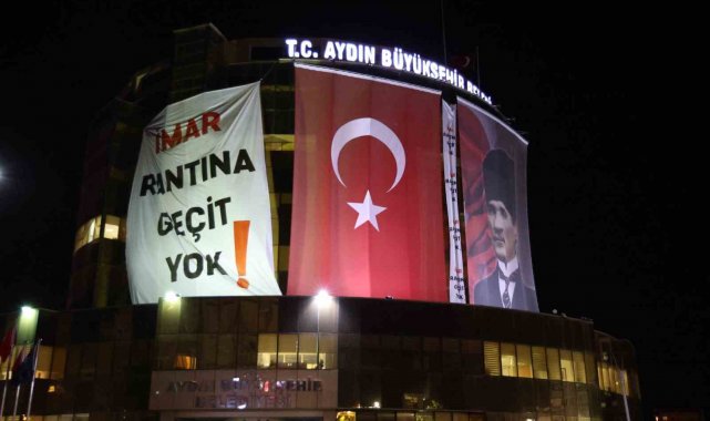 Aydın Büyükşehir Belediyesi binasına dev pankart: "İmar rantına geçit yok"