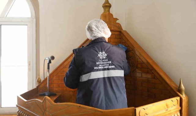 Aydın Büyükşehir Belediyesi, kent genelinde ibadethanelerde rutin temizlik çalışmalarını sürdürüyor.