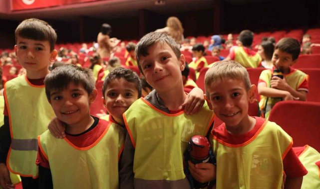 Minik öğrenciler, kendilerini tiyatro ile buluşturan Aydın Büyükşehir Belediye Başkanı Özlem Çerçioğlu'na teşekkür etti.