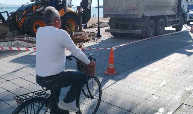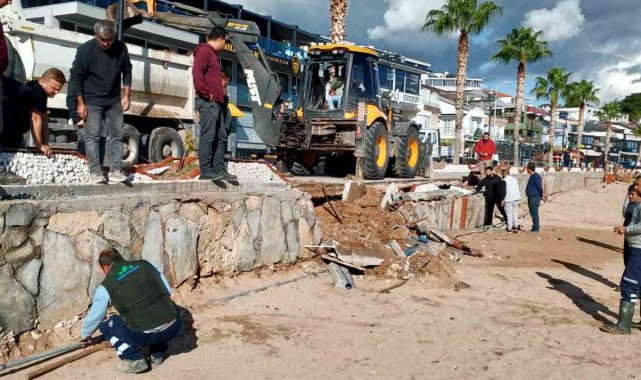 Didim'de etkili olan şiddetli yağışların ardından Altınkum Mahallesi Yalı Caddesi'nde oluşan bozulmalar için Aydın Büyükşehir Belediyesi onarım çalışmalarına başladı.