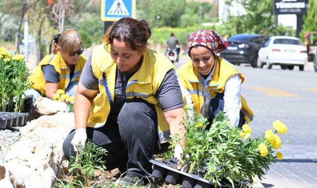 Park ve Bahçeler Dairesi Başkanlığı ekipleri, İstasyon Caddesi başta olmak üzere birçok noktada refüj boyaması, budama, çim biçme ve çiçek dikimi gibi peyzaj faaliyetlerini tamamladı. Kadın emekçiler tarafından yetiştirilerek dikilen rengarenk çiçekler, ilçeye bahar havası kattı.