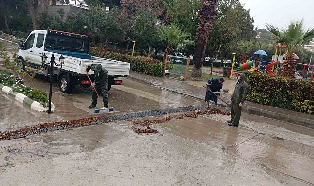 Kent genelinde etkili olan sağanak yağışa karşı teyakkuza geçen Aydın Büyükşehir Belediyesi ve ASKİ ekipleri, gece gündüz demeden çalışmalarını sürdürerek vatandaşların can ve mal güvenliğini sağlarken, muhtemel su basmalarının önüne geçilmesi amacıyla yapraklar veya çöpler nedeniyle tıkanan mazgallarda temizlik çalışması gerçekleştirdi.