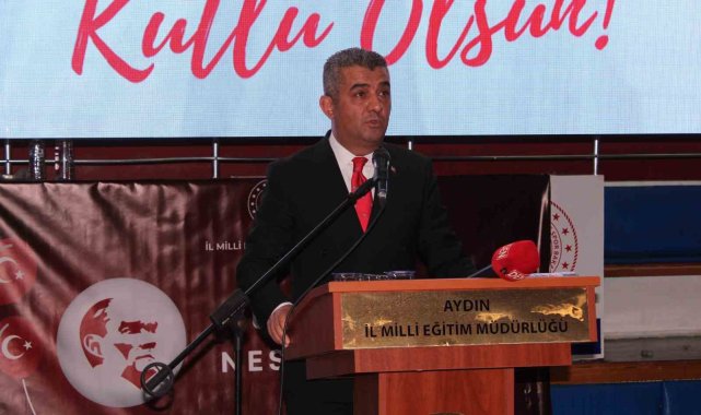 Atatürk Kapalı Spor Salonu'nda yapılan törene Aydın Valisi Yakup Canbolat, Aydın Büyükşehir Belediye Başkanı Özlem Çerçioğlu, kamu kurumlarının temsilcileri, siyasi parti il ve ilçe başkanları, belediye meclis üyeleri, sivil toplum kuruluşlarının temsilcileri ile vatandaşlar ve öğrenciler katıldı.
