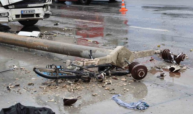 Aydın'da akıllara durgunluk veren bir kaza yaşandı. Aydın-Denizli kara yolunda kazaya karışan aracın çarptığı beton elektrik direği devrildi. Bu sırada yol kenarındaki bisikletli şahıs devrilen direğin altında kalarak feci şekilde hayatını kaybetti.