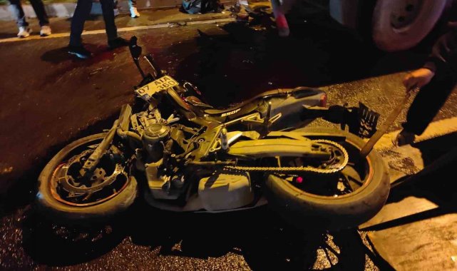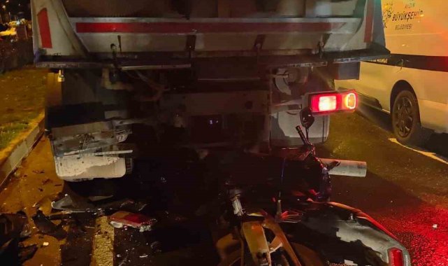 Aydın'ın Kuşadası ilçesinde aşırı hızlı olduğu iddia edilen motosikletin kamyona çarpması sonucu meydana gelen kazada motosiklet sürücüsü hayatını kaybetti.