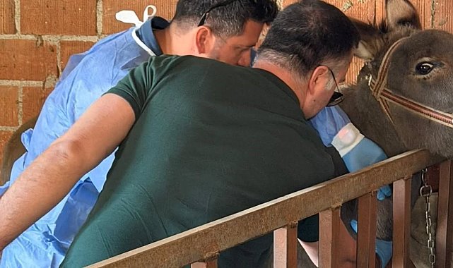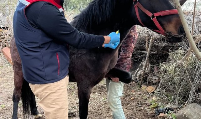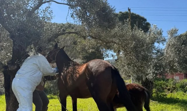 Afrika At Vebası (AHS) hastalığında farkındalığın artırılması çalışmalarına yönelik Aydın'daki at ve eşeklerden numune alınıyor.