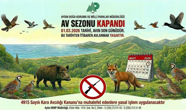 2025-2026 Av Dönemi kapsamında, Merkez Av Komisyonu Kararı doğrultusunda 01 Mart 2026 tarihi itibarıyla av sezonu ülke genelinde olduğu gibi Aydın il genelinde de kapandı. Yaban hayatında hayvanların üreme ve yavrulama dönemine girdiği belirtilirken bu dönemde avlanma faaliyetlerine son verilmesi, yaban hayatlarının rahatsız edilmemesi, üreme alanlarının korunması, doğada hassasiyetle hareket edilmesi gerektiği açıklandı. Ayrıca 4915 sayılı Kara Avcılığı Kanunu'na muhalefet edenlere yasal işlem uygulanacağı aktarıldı.