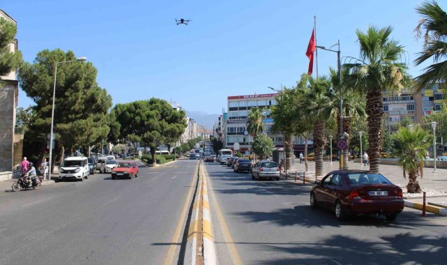 Aydın'da Trafik Denetleme Şube Müdürlüğü ve İnsansız Hava Araçları Büro Amirliği'ne bağlı İHA operatörleri tarafından drone destekli trafik denetimi gerçekleştirildi. Bu çerçevede harekete geçen ekipler Efeler'de bulunan Adnan Menderes Bulvarı Abide Kavşağı'nda drone destekli uygulama yaptı. Havadan yapılan denetimlerde, seyir halinde cep telefonu kullanımı, emniyet kemeri takmama, kasksız motosiklet kullanımı, yaya geçidinde yol vermeme ve kırmızı ışıkta geçme konularına ağırlık verilirken, sürücülerin yaptığı ihlaller de havadan görüntülenerek fotoğraflandı.