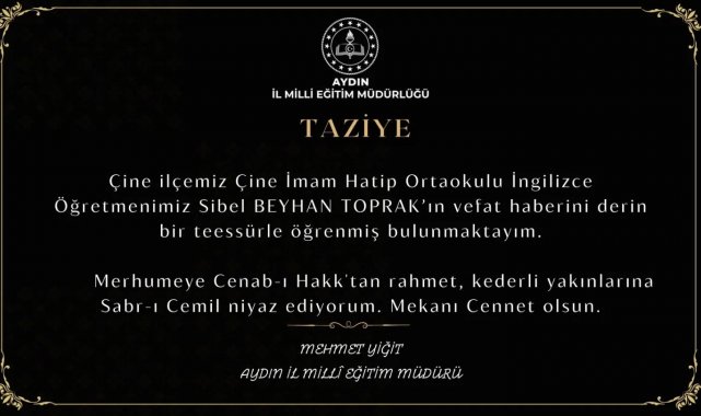 Kazanın ardından hayatını kaybeden Sibel Beyhan Toprak'ın Çine İmam Hatip Ortaokulu'nda İngilizce öğretmeni olduğu öğrenildi. İl Milli Eğitim Müdürü Mehmet Yiğit yayımladığı taziye mesajında, "Çine İmam Hatip Ortaokulu İngilizce Öğretmenimiz Sibel Beyhan Toprak'ın vefatını derin bir teessürle öğrenmiş bulunmaktayım. Merhumeye Cenab-ı Hakk'tan rahmet, kederli yakınlarına Sabr-ı Cemil niyaz ediyorum. Mekanı cennet olsun" ifadelerine yer verdi.
