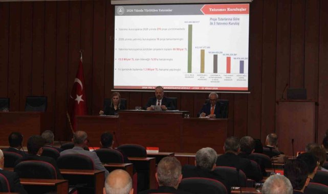Aydın İl Koordinasyon Kurulu'nun 2026 yılı 2. Dönem Toplantısı, Aydın Valisi Yakup Canbolat başkanlığında gerçekleştirildi. Yatırım İzleme ve Koordinasyon Başkanlığı (YİKOB) Toplantı Salonu'nda düzenlenen toplantıda, 2026 yılı Ocak-Mart aylarını kapsayan ilk 3 aylık dönemde yapılan yatırımlar değerlendirilirken, projeler de görüşüldü. Aydın genelinde 2026 yılında uygulanan 307 projeden 25 adedinin tamamlandığını ifade eden Aydın Valisi Yakup Canbolat, geriye kalan 282 adet projenin de 174 adedinin devam ettiğini, 15 adedinin ihale aşamasında olduğunu, 93 adedinin ise çeşitli nedenlerden dolayı başlanamadığını belirtti. İl genelinde uygulanan projelerin genel toplamında toplam proje tutarının 92 milyar 41 milyon 974 bin TL, önceki yıllar harcaması 22 milyar 82 milyon 168 bin TL, 2026 yılı ödeneği 14 milyar 330 milyon 218 bin TL olduğunu sözlerine ekleyen Vali Canbolat, 2026 yılı harcamasının ise 1 milyar 844 milyon 294 bin TL olduğunu, toplam harcama tutarının ise 23 milyar 926 milyon 462 bin TL olduğunu açıkladı.