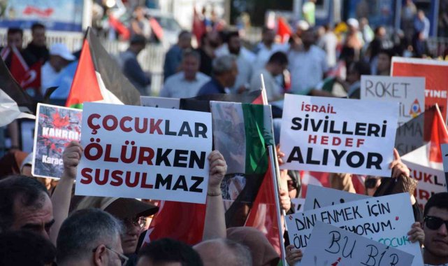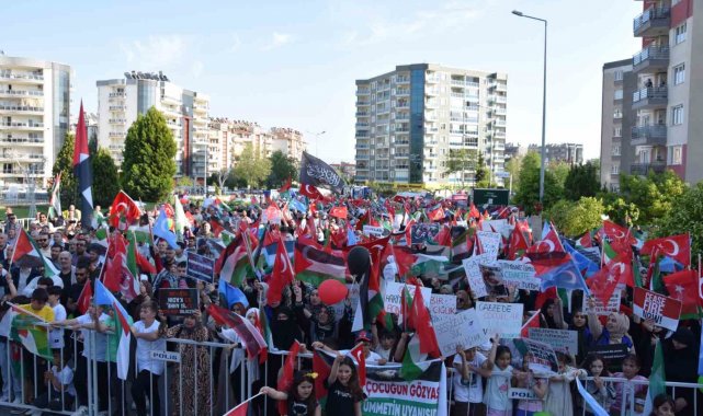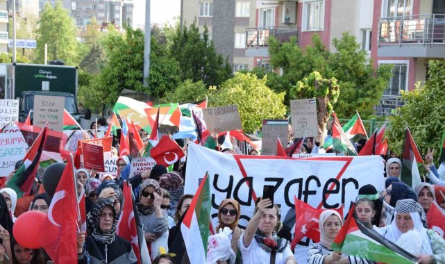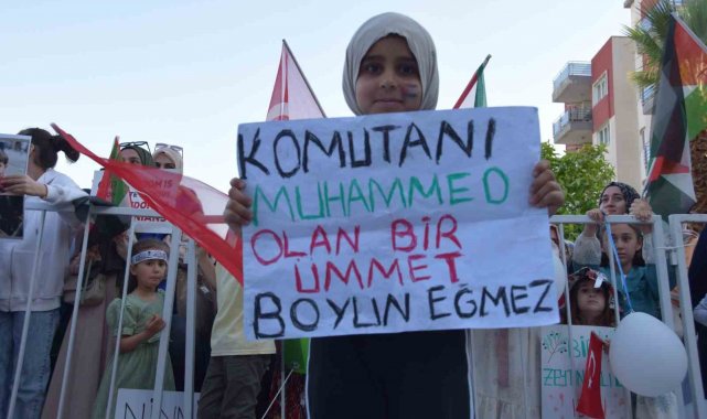 Efeler Atatürk Kent Meydanı'nda düzenlenen mitingde Gazze'de yaşananların sadece bir savaş değil, açık bir soykırım olduğuna dikkat çekildi.