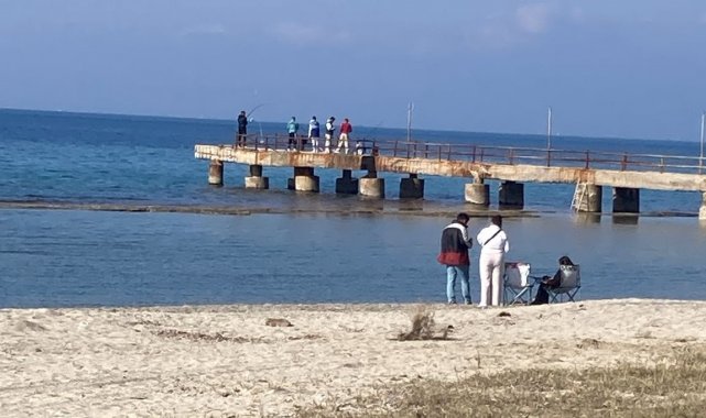 Aydın'ın önemli turizm bölgelerinden olan Kuşadası ilçesinde etkili olan güneşli hava ile birlikte çok sayıda vatandaşlar sahillere akın etti. Sahillerde bazı vatandaşlar denize girip güneşlenirken, bazıları da balık tutarak güneşin tadını çıkardı.