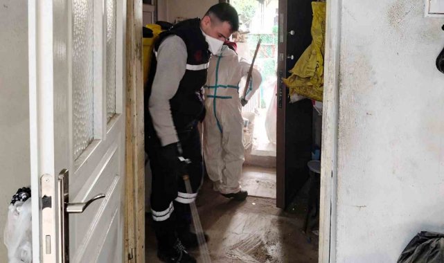 Temizlik İşleri Müdürlüğü ekiplerinin çalışmalarını tamamlamasının ardından, Sağlık İşleri Müdürlüğü ekipleri de devreye girerek evlerde ilaçlama ve dezenfeksiyon işlemleri gerçekleştirdi. Titizlikle yürütülen çalışmalar sonucunda evler, yeniden sağlıklı ve güvenli bir şekilde kullanılabilir hale getirildi.