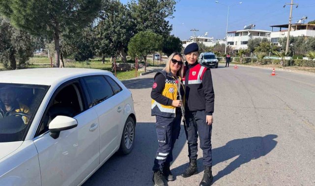 Aydın'da 8 Mart Kadınlar Günü dolayısıyla jandarma ekipleri kadınlara çiçek takdim ederek günlerini kutladı.