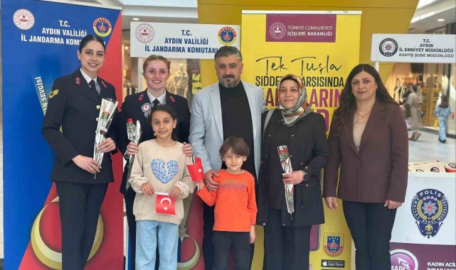 Aydın İl Jandarma Komutanlığı ekiplerince 8 Mart Kadınlar Günü haftası münasebetiyle 'Dünyada her şey kadının eseridir' mottosuyla kadınlar ziyaret edilip, kadınlara yönelik etkinlikler katılım gösterilerek '8 Mart Dünya Kadınlar Günü' kutlandı. Günün anlam ve önemi hakkında sohbet edilen kadınlara karanfil hediye edilirken, jandarmanın her zaman yanlarında olduğu belirtildi.