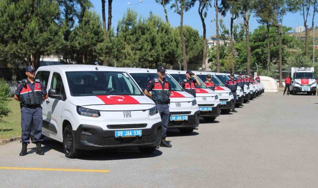 Aydın İl Jandarma Komutanlığı'na tahsis edilen 52 araç, bugün düzenlenen törenle teslim edilirken, doğal afet ve arama kurtarma için kullanılan tam donanımlı JAK aracı ise dikkatleri üstüne çekti.