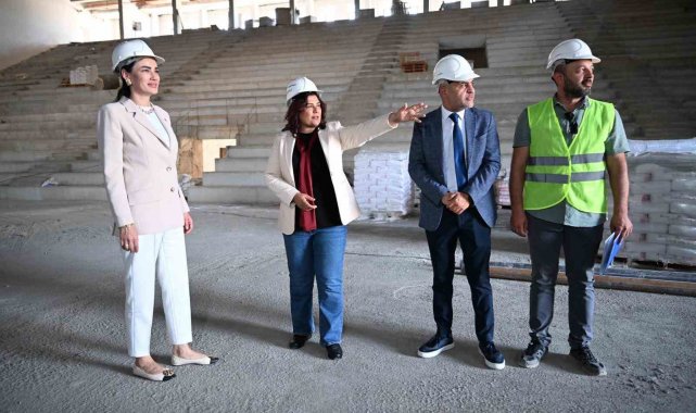 Aydın Büyükşehir Belediye Başkanı Özlem Çerçioğlu, AK Parti Aydın Milletvekili Seda Sarıbaş ile birlikte Efeler ilçesi Mimar Sinan Mahallesi'nde yapımı hızla devam eden kapalı spor salonu inşaatında incelemelerde bulundu.