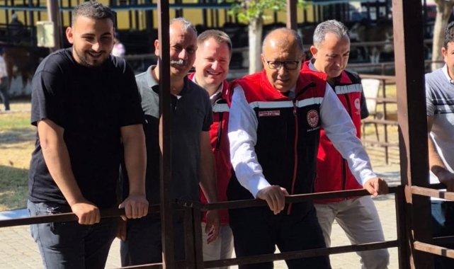 Aydın Tarım ve Orman İl Müdürü İbrahim Altıntaş ve beraberindeki heyet Efeler ilçesinde bulunan Çeştepe Hayvan Pazarı'nda incelemelerde bulundu.