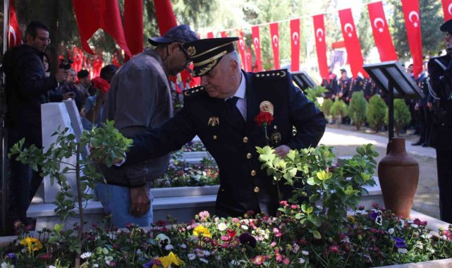 Çelenk sunma töreninin ardından Kemer Mezarlığı ziyaret edildi. Şehitlikte gerçekleştirilen törende, duaların okunmasının ardından Emniyet Müdürü Erdoğan ve polisler şehit kabirlerine karanfil bıraktı.