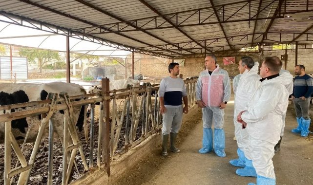 Aydın genelinde sürdürülen yoğun aşılama çalışmalarıyla şap hastalığının yayılımının önüne geçilmesi ve hayvancılıkta verim kayıplarının önlenmesi hedefleniyor. Şap hastalığına karşı yürütülen çalışmalar kapsamında Aydın İl Tarım ve Orman İl Müdürü Ayhan Temiz, Efeler İlçe Müdürlüğü Hayvan Sağlığı personeliyle birlikte sahada incelemelerde bulunarak işletme ziyareti gerçekleştirdi. Ziyarette İl Müdür Yardımcısı Dr. Hamit Eray Yeşilçayır ve Efeler İlçe Müdürü Mehmet Esen de hazır bulunarak işletme sahibine; hayvan hastalıklarından korunmada en önemli unsur olan aşılama faaliyetleri ile biyogüvenlik tedbirlerinin önemi hakkında bilgilendirmelerde bulundu. Yetkililer, hastalık riskine karşı hazırlanan planlama doğrultusunda ikinci doz aşılama çalışmalarının da hız kesmeden devam ettiğini belirtirken, yetiştiricilere aşılama programlarına eksiksiz uyulması ve işletmelerde hijyen şartlarının titizlikle uygulanması çağrısında bulundu.