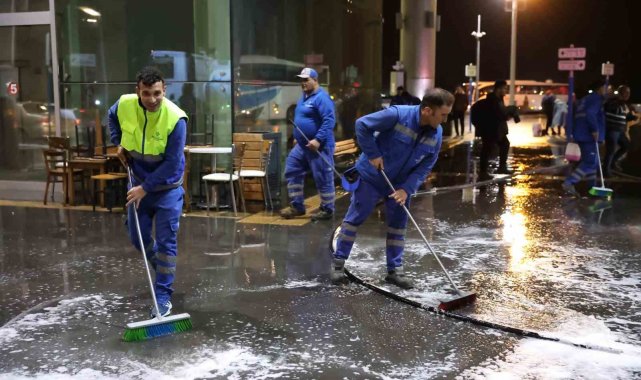 Büyükşehir Belediyesi Çevre Koruma ve Kontrol Dairesi Başkanlığı ekipleri, bayram öncesinde otobüs terminallerinde geniş kapsamlı temizlik çalışması gerçekleştirdi. Çalışmalar, bayram tatilini geçirmek üzere turizmin ve tarihin kenti Aydın'a gelen vatandaşların yoğunluk oluşturduğu terminallerde gece saatlerinde hayata geçirildi. Eş zamanlı gerçekleştirilen temizlik çalışmaları ile Aydın'ın terminalleri temiz bir görünüme kavuştu.