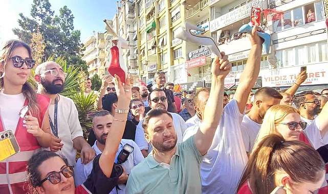 Aydın Büyükşehir Belediye Başkanı Özlem Çerçioğlu'nun CHP'den istifa edip AK Parti'ye geçmesine tepki gösteren Cumhuriyet Halk Partisi (CHP) Aydın İl Teşkilatı üyeleri, topuklu ayakkabılarla protesto düzenledi.