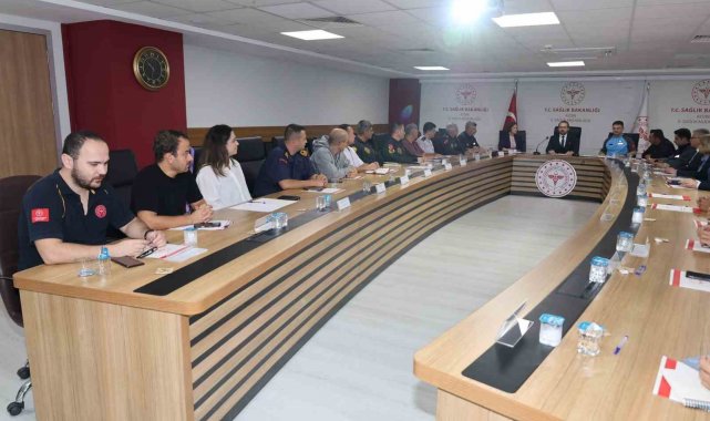 İl Sağlık Müdürlüğü Sağlık Hizmetleri Başkanlığı'na bağlı Afetlerde Sağlık Hizmetleri Birimi koordinasyonunda düzenlenen toplantıya, İl Sağlık Müdürü Dr. Eser Şenkul başkanlık etti. Toplantıda, muhtemel bir afet senaryosu çerçevesinde sağlık hizmetlerinin kriz anında nasıl yönetileceğine dair kurumsal işleyiş, müdahale planları ve görev dağılımları değerlendirildi. Kurumlar arası koordinasyon, iletişim zinciri, kaynak yönetimi ve olay anına dair operasyonel süreçler senaryo üzerinden detaylı şekilde aktarıldı. Programın sonunda, 21 Ekim 2025 tarihinde gerçekleştirilecek saha tatbikatında uygulanacak eylemler görüşülerek, afetlere karşı hazırlık düzeyinin artırılmasına yönelik planlamalar yapıldı.