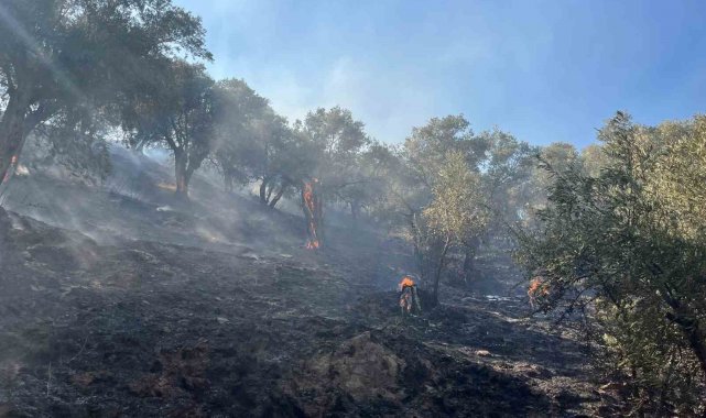 Yangında 30 dönüm zeytinlik alanın zarar gördüğü öğrenildi.
